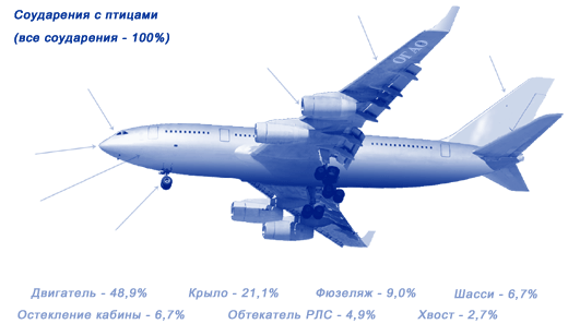 Процентное соотношение повреждений от столкновения с птицами (анимация с официального сайта ОГАО).