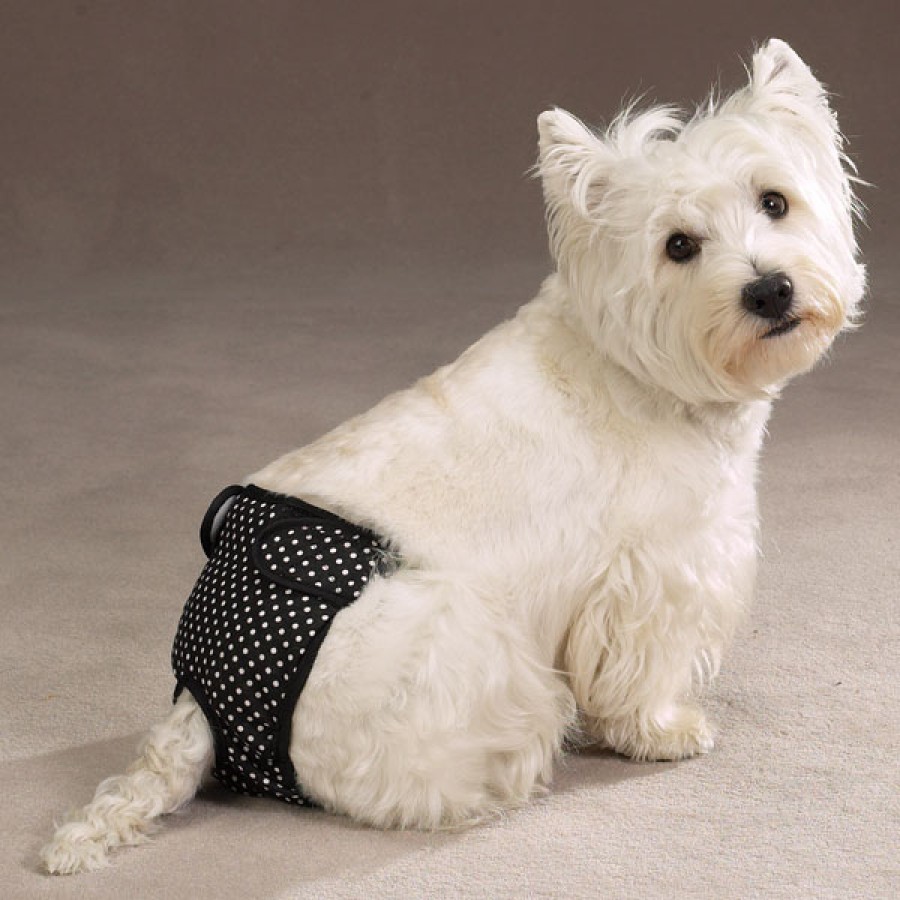 - Перед каждой прогулкой крупных и небольших собак на улице надевать специальные трусики. Они способны не только избавить владельца от неприятной обязанности вытирать полы и иные поверхности за собакой, но и предотвратить нежелательное ее покрытие встретившимся на прогулке кобелем.